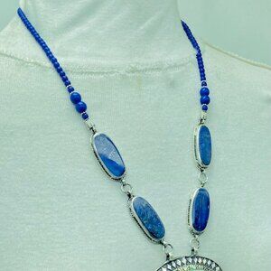 Enhance your style with this stunning Lapis Lazuli necklace with blue beads featuring a vibrant blue Lapis Lazuli semi-precious stone. Perfect for adding a touch of elegance and sophistication to any outfit, this necklace is a must-have for jewelry admirers.