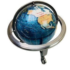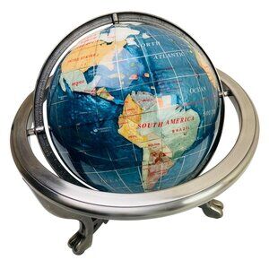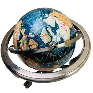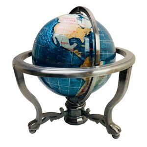 Lapis Lazuli Round World Globe w Gemstone Countries 12x12" Metal Stand & Compass