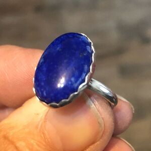 Lapis Lazuli And Sterling Silver Ring. Scalloped setting. This ring will be custom made for you. Message me for sizing. The stone measures 13mm x 18mm or 0.5” x 0.7”. Artisan. Hand crafted. New from my studio in Florida. Made in the USA.