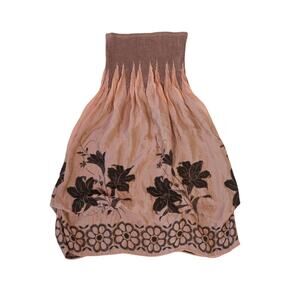 Lapis Pink-Tan and Black Floral Smocked Convertible Skirt Strapless Dress