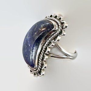 Lapis Ring, Moon, Sterling Silver, Crescent Moon, Artisan, Size 6 1/2, Statement