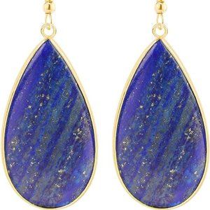 Lapis Stone Earrings Blue Gemstone Water Drop Gem Dangle Charm Gold Frame New