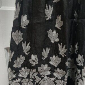 This is a beautiful dress or maxi skirt. It is black with gray flowers and butterflies. One Size Fits All. Never worn but no tags.