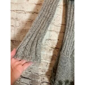 Lapis Sweater Womens Medium Gray Faux Fur Ruffle Trim Open Front Waterfall Cardi