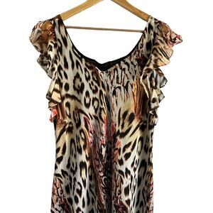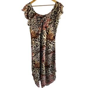 Lapis Vintage Women’s Size 1X 100% Silk Y2K Animal Print Handkerchief Hem Maxi Dress