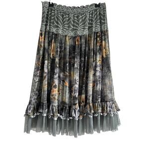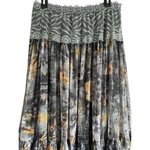 Lapis Women’s Size Medium Boho Floral Tole Lace Ribbon Midi Skirt