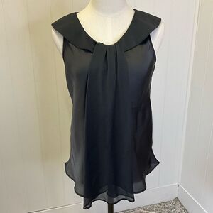Lapis Womens Small Pullover Sleeveless Top Black Tie Ruffle Neckline Flowy