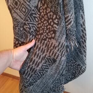 The Lapis Wool Blend Long Fringe Open Front Cardigan Sweater in Size M exudes a sense of quiet luxury with its cozy yet stylish design. This sweater features a tight-knit animal print pattern in a variety of colors, making it perfect for various occasions such as travel, casual outings, or workwear. The oversized and hooded cardigan also includes fringe accents, a one-button detail, and convenient pockets, adding to its bohemian and Western-inspired theme. Made from a blend of wool, polyester, nylon, and more, this sweater is both comfortable and fashionable for the winter, fall, and spring seasons.
