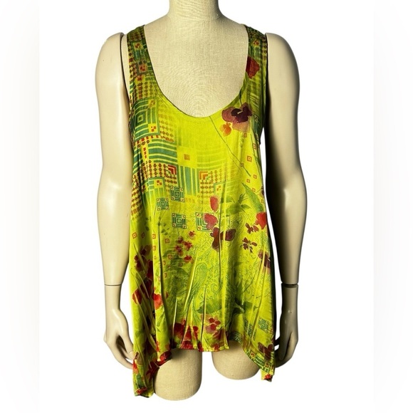 Lapis Y2K Satin Racer Back Swing Tank Size M-Yellow-Green Shark Bite Hem
