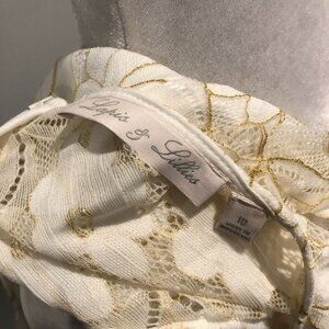 Lapis and Lillies Lace Sleeveless Dress Size 10 Ruffles White Gold Glitter Women