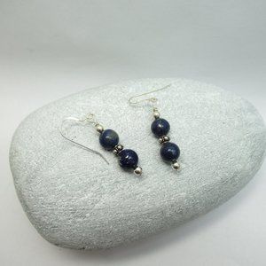 This listing is for the pair of Sterling silver and Lapis earrings pictured. They were made by me using dark blue Lapis gemstone beads and vintage Bali sterling beads. They are new and have never been worn, but are old stock that I had in storage. They hang from 925 sterling silver earwires.