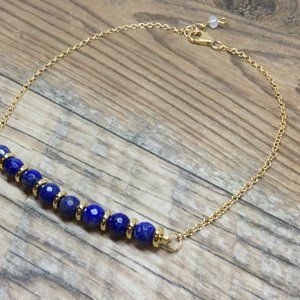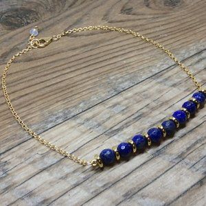 Lapis anklet, throat chakra, crystal healing jewelry, September birthstone