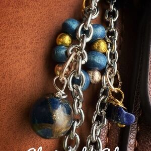 This elegant brown leather key holder features a stylish dark metallic chain with turquoise embellishments, offering a touch of sophistication to your everyday essentials.