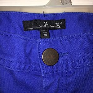 Really soft and comfortable pants. Beautiful lapis blue color. I would love to keep these if they only fit! Worn only twice. Great condition! No trades.
