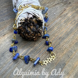 Lapis lazuli confetti gold rosary link chain adjustable bracelet/tennis bracelet