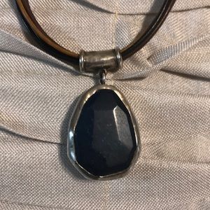 Beautiful lapis stone set in sterling silver on leather cords