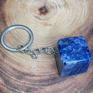 Lapis Lazuli cube keychain key ring pendant chain NEW hand crafted