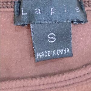 This Lapis top is super cool with mixed prints in hues of brown, cream, mustard yellow, & mauve. Bell sleeve. Crew neck. Beaded front embellishment. Euc