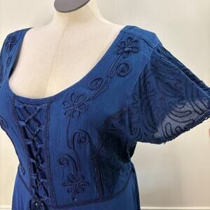 Lapogee Asymmetric Dress Embroidered Lace up Boho Whimsigoth Fairy Renaissance