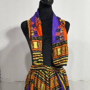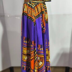 Lapogee Dashiki Print Purple Long Maxi Skirt and Small Scarf Women's Large
