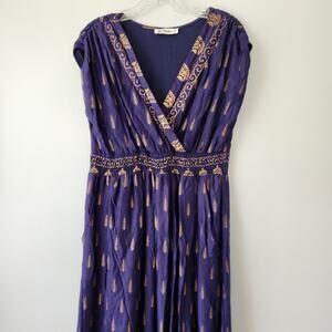Lapogee Dress Women's L Navy Maxi VNeck Cottagecore Prairie Boho Coastal Grunge