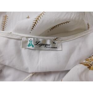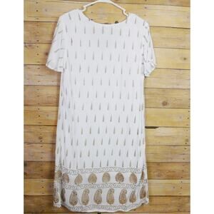 Lapogee Dress XL White Copper Paisley Short Sleeve Tassle V-Neck Boho