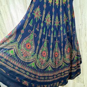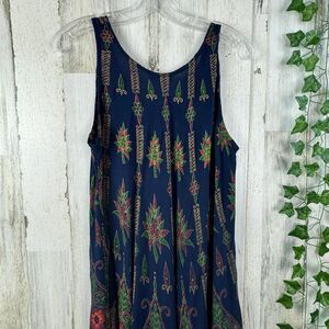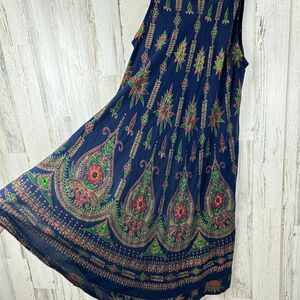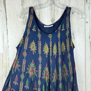 Lapogee India 100% Rayon Blue Orange Floral Long Tank Maxi Tunic Dress medium
