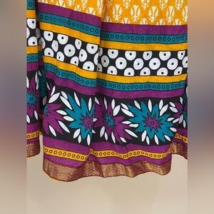 Lapogee Indian Ethnic Floral Checks Cotton Yellow Maxi Lace Hippie Boho Skirt 3X