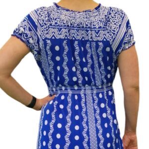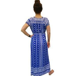 Lapogee Maxi Crossover Front High Waist Short Cap Sleeve Blue and White Size 2X