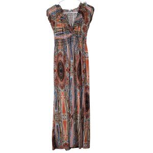 Lapogee Maxi Smocked Bohemian Chic Dress Vacation Summer Date Night Cruise Boho