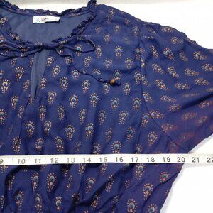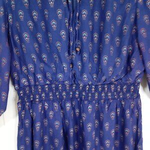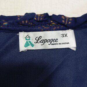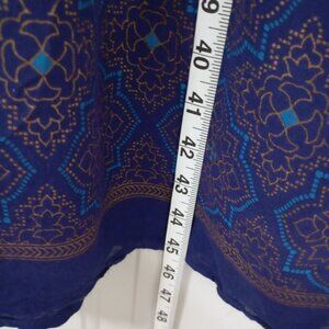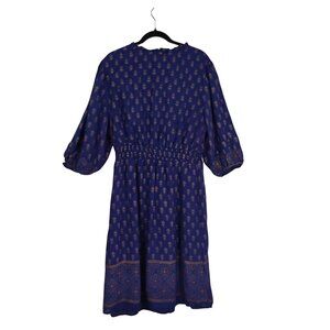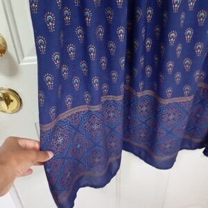 Lapogee Midi Dress Womens Boho 3X Blue Gold Teal Print Elastic Waist Tie Neck