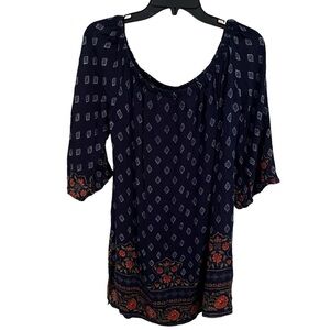 Lapogee XL Navy Blue Flowy Bohemian Off the Shoulder Tunic Blouse