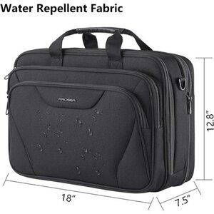 MATERIAL: The laptop briefcase is made of environment-friendly canvas poly fabric which is durable and water-repellent; Dimensions: 18”x12.8”x7.5”/9.5”; Weight:2.88LBS.