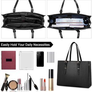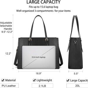 Large Capacity Design: Women computer bag divided into three sections,one main padded pocket design for 15.6 inch laptop,and one iPad pocket provide a thick padded foam section to fully protect your laptop against accidental impacts and scratches,two open big pockets for documents and books.one large zipped pocket for your private belongi