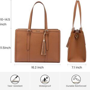 Elegant & High Quality Laptop Tote Bag Our laptop purse is made of waterproof and wear-resistant, high quality PU leather material. Tassel pendants add a sense of style to our cute laptop bag, keep our womens briefcase balanced and coordinated to keep it elegant at work and business.