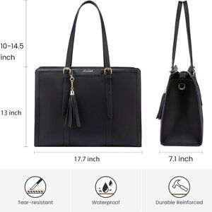 Elegant & High Quality Laptop Tote Bag Our laptop purse is made of waterproof and wear-resistant, high quality PU leather material. Tassel pendants add a sense of style to our cute laptop bag, keep our womens briefcase balanced and coordinated to keep it elegant at work and business.