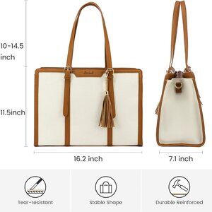 Elegant & High Quality Laptop Tote Bag Our laptop purse is made of waterproof and wear-resistant canvas material, high quality PU leather edge embellishment. Tassel pendants add a sense of style to our cute laptop bag, keep our womens briefcase balanced and coordinated to keep it elegant at work and business.
