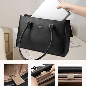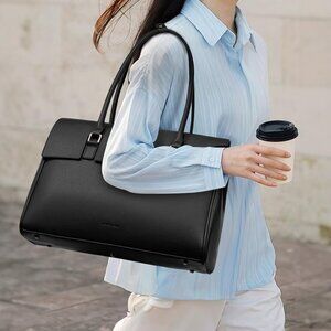 Waterproof Material & Durability Made of high-quality PU leather and high-density nylon lining, this laptop bag for women is water-resistant, scratch-resistant, wear-resistant and anti-wrinkle, so it can be also cleaned easily. Reinforced flat bottom features four metal feet to protect against scratching; Plus, other details that is smooth zipper, sturdy metal accessories and the reinforced stitching at each stress point give this women's laptop bag an upgrade in durability.