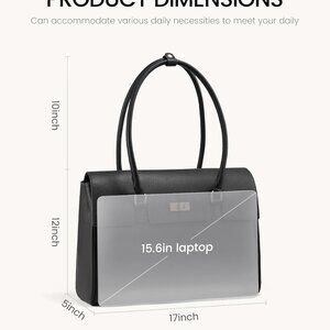 Perfect Size Work Bag Professional work bag for women is 17"*5"*12" ; Net weight: 2 LB; Handle drop: 10''; Suitable for most 13''/14''/15''/15.6''laptops..