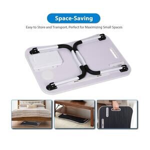 The Rainbean Laptop Bed Desk is a versatile and convenient accessory for working or studying in bed. Made of rigid plastic in a stylish walnut color, this foldable laptop lap desk tray table is compatible with any laptop or tablet. With a built-in USB charge port, you can easily charge your devices while using the desk. The desk is easy to set up and store, making it a practical choice for on-the-go productivity. Made in China, this unit comes with a 1-year manufacturer warranty for added peace of mind.