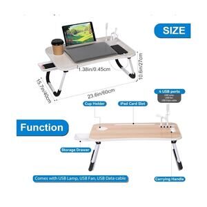 Laptop Bed Desk, Foldable Laptop Lap Desk Tray Table with USB Charge Port Walnut