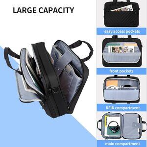 🧿MULTI-FUNCTIONAL COMPARTMENT: This bag has 1 wide-open main compartment and plenty of pockets that provide roomy space for your 17" laptop, MacBook Pro 13inch 14inch, iPad 12.9inch, HP 17 inch, power bank, A4 files, etc. The expansion zipper of briefcase makes it more flexible, the laptop briefcase can be transformed as a overnight bag whenever you need!