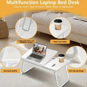 Laptop Desk Folding Adjustable Angle with Cup Holder White NWT