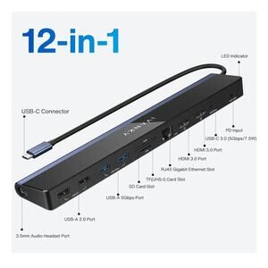 Brand new in open box! iVANKY 12-in-1 USB-C Docking Station with dual HDMI 4K@60Hz support, 6 USB ports, SD/TF card reader, 1000Mbps Ethernet, and 85W laptop charging. Offers blazing-fast file transfers (5Gbps USB 3.0), stable network, and dual monitor expansion—no drivers needed. 100W PD cable/charger not included. Compatible with Surface, Dell, HP, Lenovo, Steam Deck, and more.