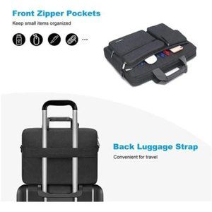 🧿The main inner compartment holds your laptop and other important things. 2 raised & 1 flapover & 1 horizontal pockets are convenient for quick-access and store cell phone, pen slots, wallet, keys and other small items. Multifuncional 4 front pockets design laptop shoulder bag enables you to carry your laptop/notebook/ultrabook computer in a uniquely sleek style.