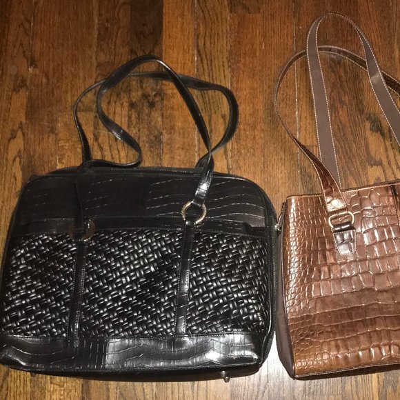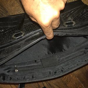 Nice woven Black leatherette laptop bag with roomy interior and very professional looking. Shoulder straps and only used once.