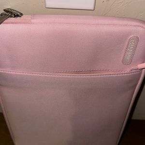 Laptop or iPad case. 13 inches wide. 10 inches high. Non smoking home. Light pink.