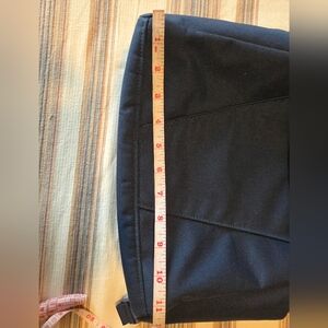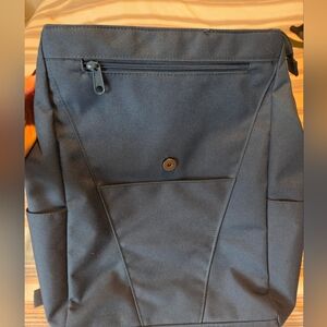 Backpack is slim and perfect for everyday use. Fits 16" laptops. Its stylish design, full of pockets, zippers and divisions and made of durable material. Nice dark blue color.