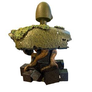 Features a round analog clock with a unique Castle in the Sky themed clock face. This has not been removed from where it is packaged in the styrofoam but can be seen intact in photos.