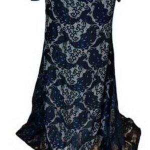 This is a full-length, lace fabric, long dress with an illusion V neck & long sheer sleeves. It is embellished with beads. Perfect for the guest of a wedding, or a formal dinner with that elegant, refined look.